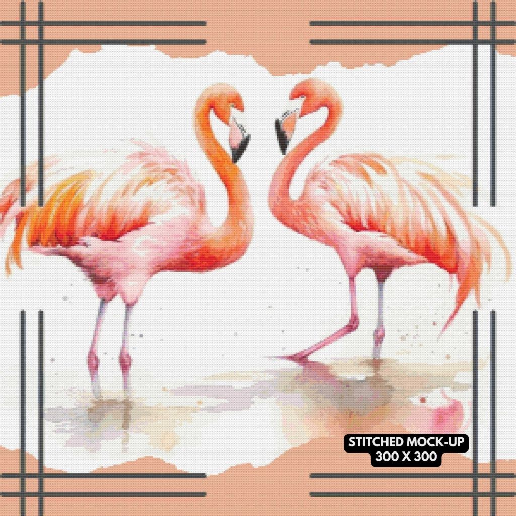I recently came across a set of watercolor flamingos. I decided to purchase the rights to create some cross stitch designs. These flamingos truly are attractive and charming subjects for cross stitch patterns.