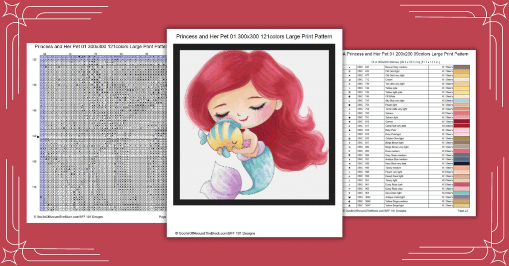 Enjoy this adorable little mermaid princess and her pet angelfish. Download the free cross stitch pattern.