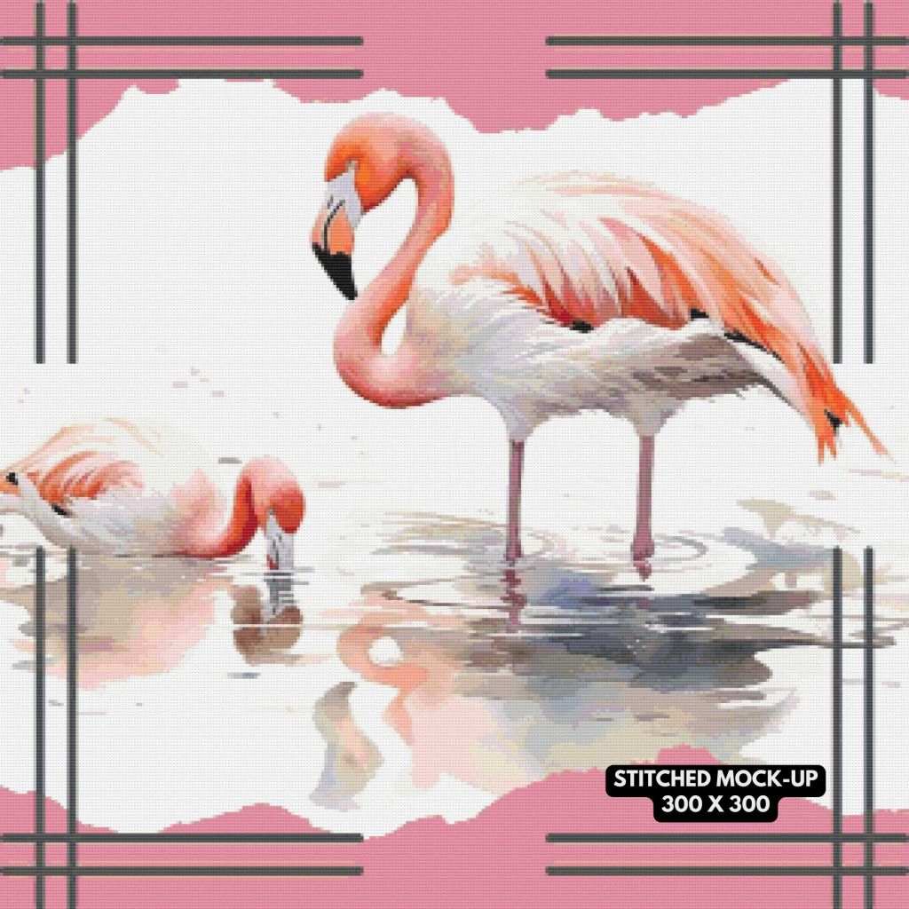 I recently came across a set of watercolor flamingos. I decided to purchase the rights to create some cross stitch designs. These flamingos truly are attractive and charming subjects for cross stitch patterns.