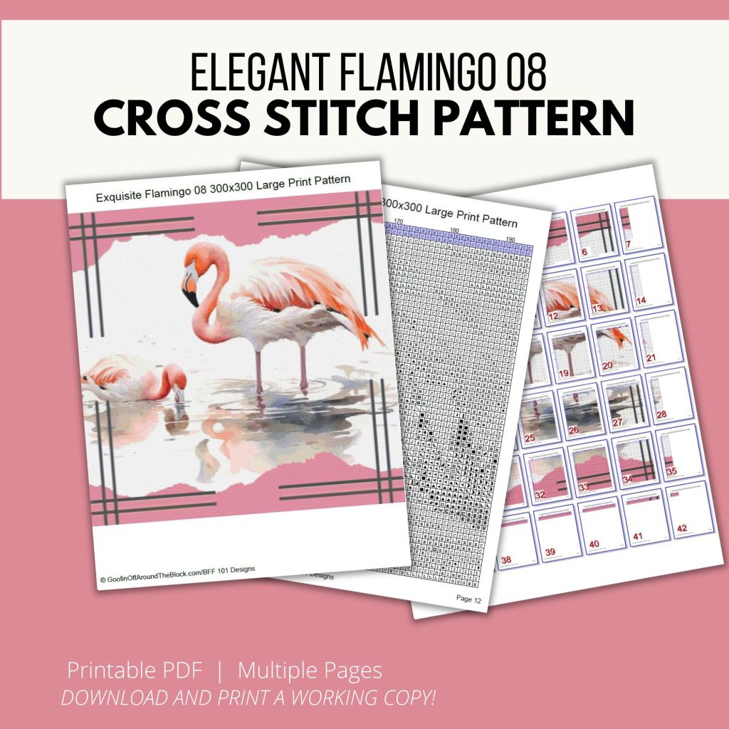 Free Exquisite Flamingo 08 Pattern – 300×300 Approximately 120 DMC Colors